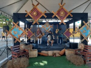 Em alusão às festas juninas de São João, conduzido pela Secretaria de Cultura, o dia do Arraial da Vacinação teve características simples, como um palco caracterizado à tradicional festa, com músicas referentes à época (cantadas inicialmente por Chico Cabeludo) e o famoso mugunzá (cangica), servido por dona Dima e Sara, gratuitamente.