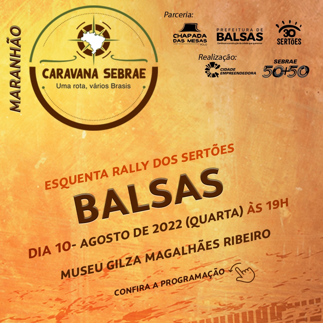 Você está convidado a participar da largada para as ações do Rally dos Sertões em Balsas, no dia 10 de agosto, às 19h00, no Museu Gilsa Magalhães Ribeiro, localizado na Praça da Igreja Matriz.