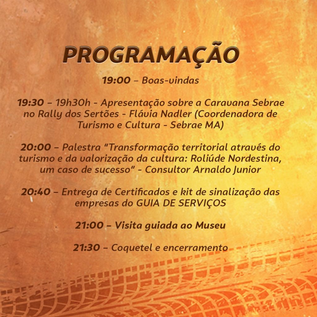 Na ocasião, o Sebrae entregará os certificados aos empreendedores que estão participando de capacitações e recebendo orientações para marcar presença na grande passagem dos competidores do Rally dos Sertões na cidade.