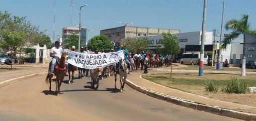 Vaqueiros fizeram uma manifestação em São Luis em frente à sede da Assembleia Legislativa do Maranhão, na Avenida Jerônimo de Albuquerque. Eles são contra a decisão do STF que proibiu a vaquejada no Ceará. O ato público foi para pressionar os parlamentares maranhenses a se manifestarem nesta discussão e legalizarem a vaquejada.
