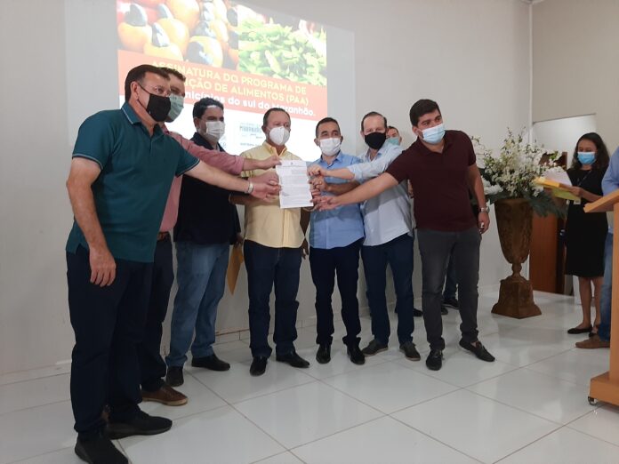 O evento aconteceu nesta última quarta-feira, 14/04, no salão principal do Balsas Premier Hotel e contou com a presença do vice-governador Carlos Brandão, dos secretários Rodrigo Lago (SAF) e Márcio Honaiser (Sedes), além dos prefeitos de vários municípios que participaram da assinatura dos termos de cooperação do PAA com prefeitos e secretários dos municípios de Balsas, Fortaleza dos Nogueiras, Loreto, Riachão, Paraibano, Mirador, São Felix de Balsas, São Domingos do Azeitão, São Raimundo das Mangabeiras, Tasso Fragoso e Nova Colinas.O vice-governador Carlos Brandão ressaltou a importância do programa em época de pandemia.