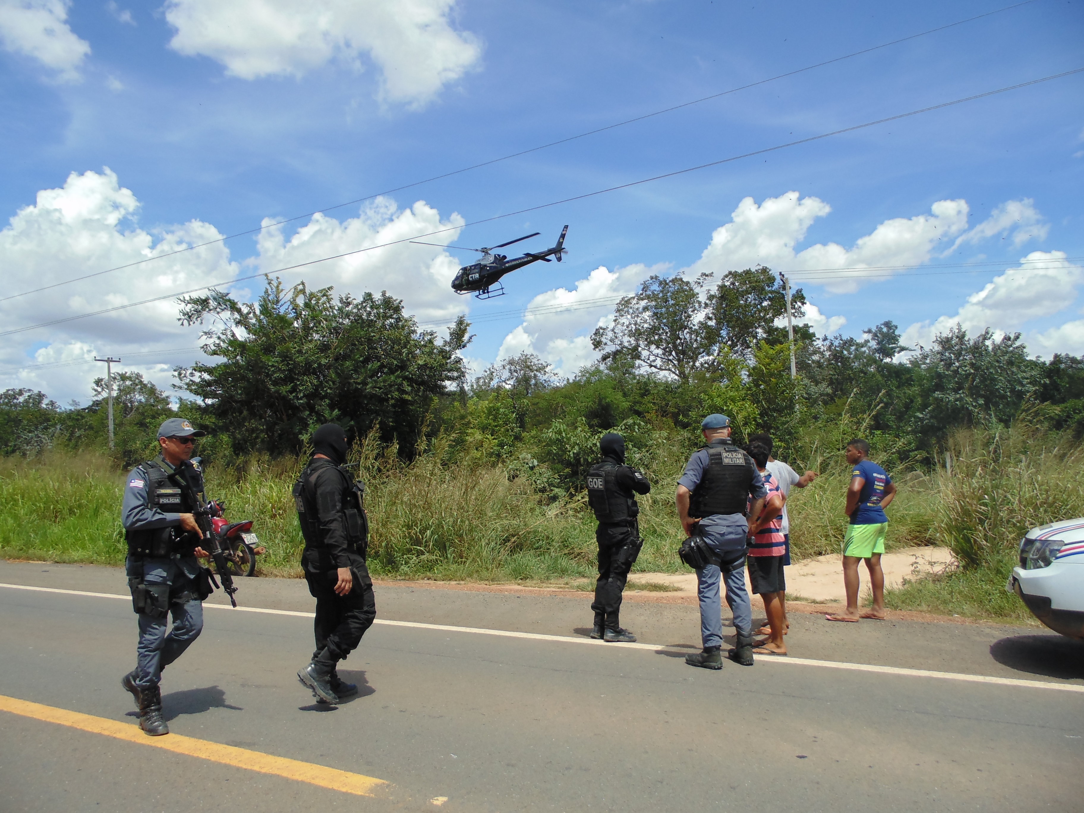 O comandante Ten. Cel. Medeiros, acompanhado do Mj. Gilberto e vários policiais em viaturas cercaram o local, recebendo a cobertura de um helicóptero do CTA, que durante horas fez voos rasantes sobre o mato fechado, no local indicado pelos moradores.