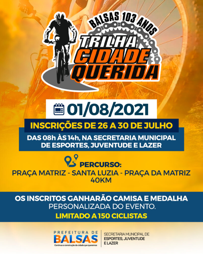Os apaixonados pelo pedal têm esta grande oportunidade de participarem do concurso esportivo, conhecerem melhor a cidade e seus arredores, além de alçar melhor contato com a natureza, numa trilha de 40 km, entre Balsas e o povoado Santa Luzia.