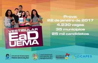 A prova é destinada a selecionar candidatos para os cursos de Graduação na modalidade a distância, para o primeiro semestre do próximo ano em São Luís, Açailândia, Alto Parnaíba, Anapurus, Arari, Bacabal, Balsas, Barra do Corda, Bom Jesus das Selvas, Carolina, Carutapera, Caxias, Codó, Coelho Neto, Colinas, Coroatá, Dom Pedro, Fortaleza dos Nogueiras, Grajaú, Humberto de Campus, Imperatriz, Itapecuru Mirim, Lago da Pedra, Nina Rodrigues, Pedreiras, Pinheiro, Porto Franco, Presidente Dutra, Santa Inês, Santa Quitéria, São Bento, São João dos Patos, Timon, Viana e Zé Doca.