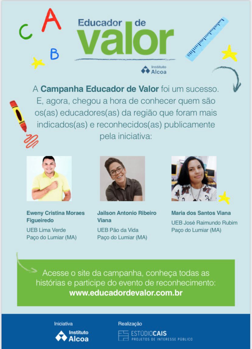 A Campanha Educador de Valor 2021, uma iniciativa do Instituto Alcoa, que visa promover uma ampla mobilização em seus territórios de atuação para a valorização dos profissionais da Educação, chega a sua última etapa.