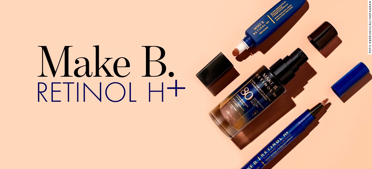 Unindo maquiagem e tratamento de pele, a nova linha do Boticário, Make B. Retinol H+, conta com a primeira base do mundo com exclusivo duplo retinol e FPS 80, além de ácido hialurônico vetorizado em sua composição. Ou seja, os lançamentos não só oferecem os efeitos imediatos desejados na maquiagem, como tratam de verdade e atuam gradualmente melhorando a textura e luminosidade da pele com o uso contínuo. Aceleração da renovação celular para uma pele mais radiante e firme a partir de 15 dias de uso, 2x mais produção de colágeno e escudo protetor contra UVA+++ e luz azul estão entre os principais benefícios do hero da linha: a base.