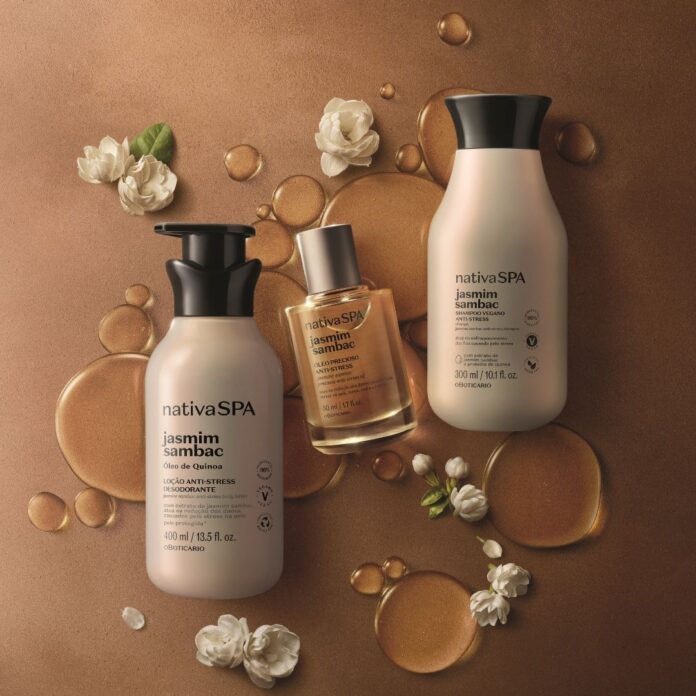 Para ajudar a passar por esse momento e para que o estresse não se reflita na pele, o Boticário lança Nativa SPA Jasmim Sambac, uma linha completa para um ritual de cuidados para o corpo e cabelos. Produzida com o extrato de Jasmim Sambac, esse segredinho especial nas fórmulas possui ação revigorante, além de efeito antioxidante, diminuindo os efeitos do estresse em até sete dias*.