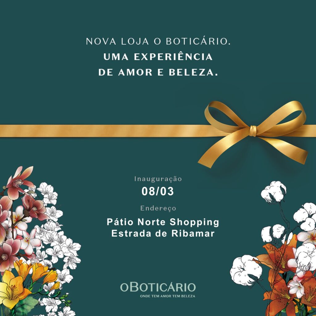 A nova loja de O Boticário fica localizada no Pátio Norte Shopping, na Estrada de Ribamar. O público poderá conhecer o novo empreendimento, nesta quarta-feira, 08/03, a partir das 11h00 da manhã.