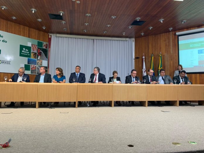 O governador do Maranhão Flávio Dino recebeu da Ministra da Agricultura, Tereza Cristina o certificado de equivalência do Serviço de Inspeção Estadual (SIE) ao Sistema Brasileiro de Inspeção de Produtos de Origem Animal (SISBI-POA), na manhã desta segunda-feira, 09, durante seminário para gestores públicos e agroindústrias, no auditório do Banco do Nordeste, em Fortaleza/CE.
