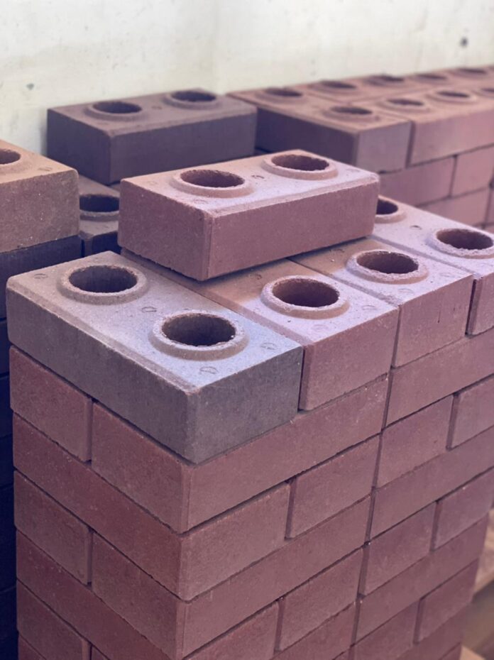Os fabricantes também produzem meio bloco do tijolo, então não se torna necessário perder tempo cortando tijolos para encaixes em cantinhos no meio da obra.